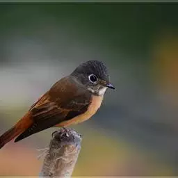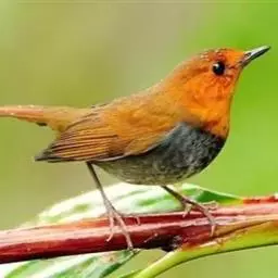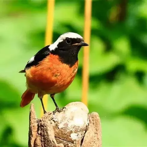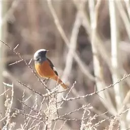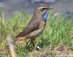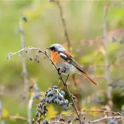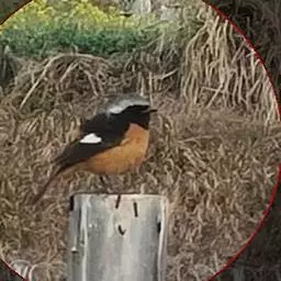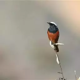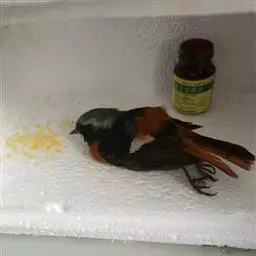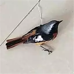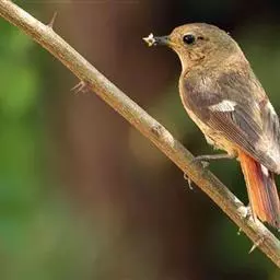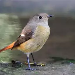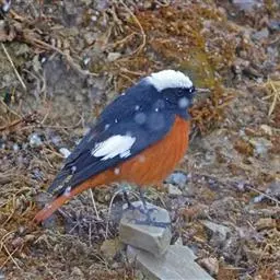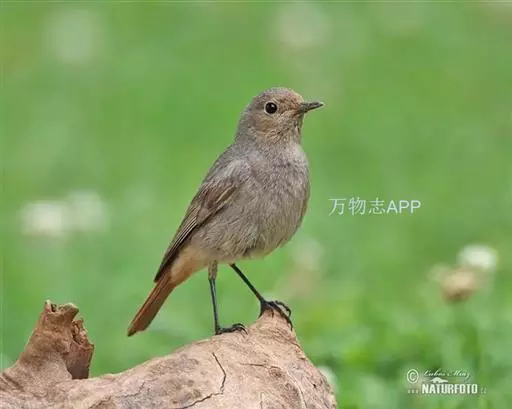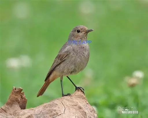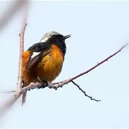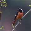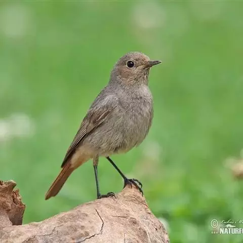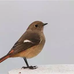 赭红尾鸲(学名:Phoenicurus ochruros):小型鸟类,体长13-16cm。雄鸟前额、头侧、颈侧、颏至胸概黑色,头顶和背灰色或黑色,腰、尾上覆羽、尾下覆羽、外侧尾羽和腹栗棕色,中央尾羽褐色,两翅黑褐色。雌鸟上体和两翅淡褐色,尾上覆羽和外侧尾羽淡棕色,中央尾羽褐色,下体浅棕褐色。