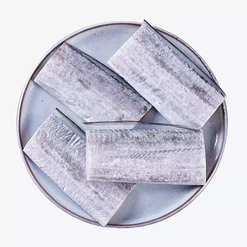 带鱼 属于脊索动物门下脊椎动物亚门中的硬骨鱼纲鲈形目带鱼科。又叫刀鱼、裙带、肥带、油带、牙带鱼等,性凶猛。青岛、日照黄海沿岸城市称鱽鱼。带鱼的体型侧扁如带,呈银灰色,背鳍及胸鳍浅灰色,带有很细小的斑点,尾巴呈黑色,带鱼头尖口大,至尾部逐 渐变细,身高为头长的2倍,全长1米左右。性凶猛,主要以毛虾、乌贼为食。主要分布于西太平洋和印度洋,在中国的黄海、东海、渤海一直到南海都有分布,和大黄鱼、小黄鱼及乌贼并称为中国的四大海产。