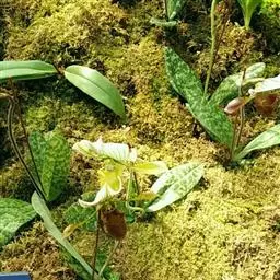 圆叶匙唇兰 Seidenf.):植株矮小,高1-3厘米。茎很短,不明显,密被覆瓦状叶鞘所包。叶质地…