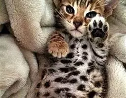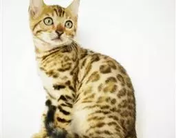 头小而圆,耳短,耳背黑色,耳尖黄色,基部也是黄色,并具有稀疏的小黑点。虹膜为黄色,在强光照射下瞳孔收缩为圆形,在黑夜则发出闪耀的磷光。犬齿发达,舌头的表面长着许多角质化的倒生小刺。嘴的侧上方各有5排斜形的胡须。额部、眼睛之间和下方以及颊部都布满了黑色的小斑点。身体的毛色鲜艳,体背为杏黄色,颈下、胸、腹和四肢内侧为白色,耳背黑色,有一块显著的白斑,尾尖黑色,全身都布满了玫瑰花形的图案和斑点,头部的斑点小而密,背部的斑点密而较大。