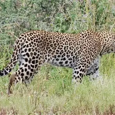 花豹是大型肉食性动物,体形似虎,但明显较小;头小尾长,四肢短健;毛被黄色,满布黑色环斑;头部的斑点…