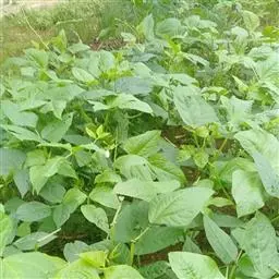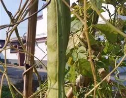 4、植株调整:扁豆成活后,及时插桩搭架,引蔓上桩,每塘插3桩,桩顶用线绑紧,最后再将每墒四周上面的桩顶之间用牢实的线连接起来,利于扁豆枝蔓攀附,形成篱壁式的生长。进入旺盛生长期后要经常打叶,主要是打除过密叶、病、虫、老叶,遮住花和结出小扁豆处的叶子,以减少养分消耗,增加通风透光性,利于扁豆荚生长。