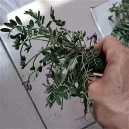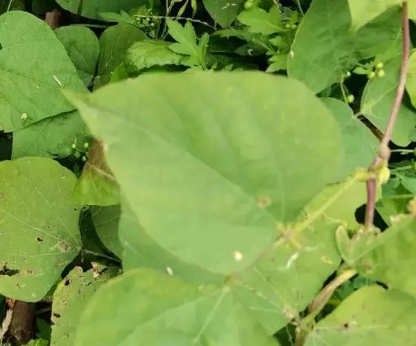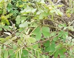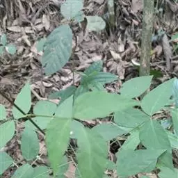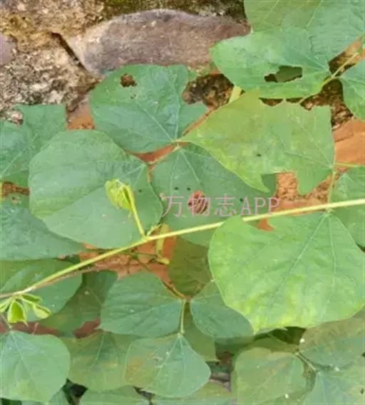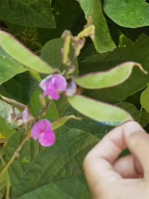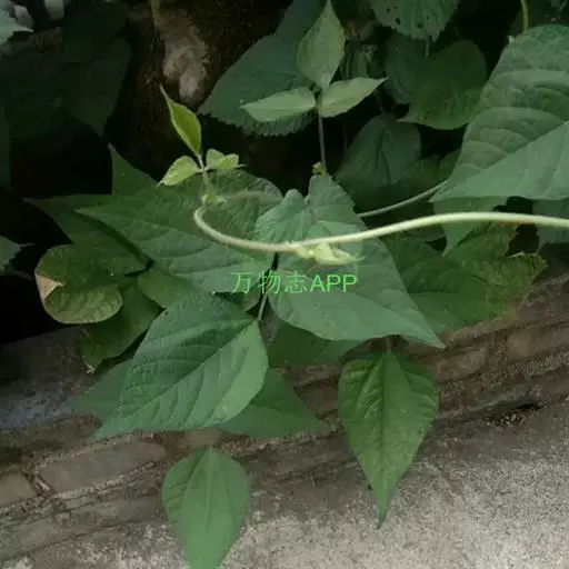 多年生、缠绕藤本。全株几无毛,茎长可达6米,常呈淡紫色。羽状复叶具3小叶;托叶基着,披针形;小托叶线形,长3-4毫米;小叶宽三角状卵形,长6-10厘米,宽约与长相等,侧生小叶两边不等大,偏斜,先端急尖或渐尖,基部近截平。