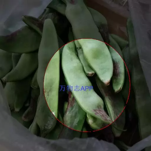 荚果长圆状镰形,长5-7厘米,近顶端最阔,宽1.4-1.8厘米,扁平,直或稍向背弯曲,顶端有弯曲的尖喙,基部渐狭;种子3-5颗,扁平,长椭圆形,在白花品种中为白色,在紫花品种中为紫黑色,种脐线形,长约占种子周围的2/5。花期4-12月。
