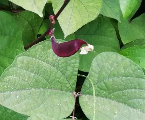 扁豆(学名:Lablab purpureus (Linn.) Sweet),通用名藊豆,多年生、缠绕藤本。全株几无毛,茎长可达6米,常呈淡紫色。羽状复叶具3小叶;托叶基着,披针形;小托叶线形;小叶宽三角状卵形,长6-10厘米,宽约与长相等,侧生小叶两边不等大,偏斜,先端急尖或渐尖,基部近截平。总状花序直立;小苞片2,近圆形;花2至多朵簇生于每一节上;花萼钟状,长约6毫米,上方2裂齿几完全合生,下方的3枚近相等;花冠白色或紫色,旗瓣圆形,基部两侧具2枚长而直立的小附属体,附属体下有2耳,翼瓣宽倒卵形,具截平的耳,龙骨瓣呈直角弯曲,基部渐狭成瓣柄;子房线形,无毛,花柱比子房长,弯曲不逾90°,一侧扁平,近顶部内缘被毛。荚果长圆状镰形,长5-7厘米,近顶端最阔,直或稍向背弯曲,顶端有弯曲的尖喙,基部渐狭;种子3-5颗,扁平,长椭圆形,在白花品种中为白色,在紫花品种中为紫黑色,种脐线形,长约占种子周围的2/5。花期4-12月。