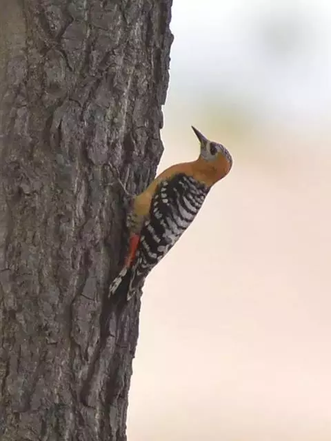 棕腹啄木鸟为啄木鸟科,啄木鸟属是中等体型的鸟类,体长约20厘米。头顶部具红色斑带。脚强健,有趾4个,…
