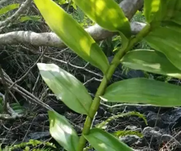 景洪石斛:茎直立,细圆柱形,多少木质化,上部常分枝,基部上方2-3个节间膨大呈纺锤形;膨大部分的茎…