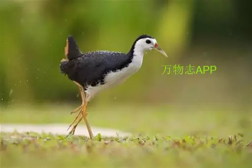 黑水鸡 黑水鸡,中等体型(31厘米),黑白色,额甲亮红,嘴短。体羽全青黑色,仅两胁有白色细纹而成的线条以及尾下有两块白斑,尾上翘时此白斑尽显。 虹膜红色;嘴暗绿色,嘴基红色;脚绿色。响而粗的嘎嘎作叫pruruk-pruuk-pruuk。除澳大利亚及大洋洲外,几乎遍及全世界。冬季北方鸟南迁越冬。亚种indica繁殖于新疆西部,包括天山;指名亚种繁殖于华东、华南、西南、海南岛、台湾及西藏东南部的中国大部地区。越冬在北纬32°以南。多见于湖泊、池塘及运河。栖水性强,常在水中慢慢游动,边在水面浮游植物间翻拣找食。也取食于开阔草地。于陆地或水中尾不停上翘。不善飞,起飞前先在水上助跑很长一段距离。