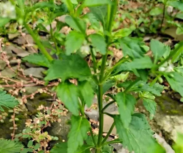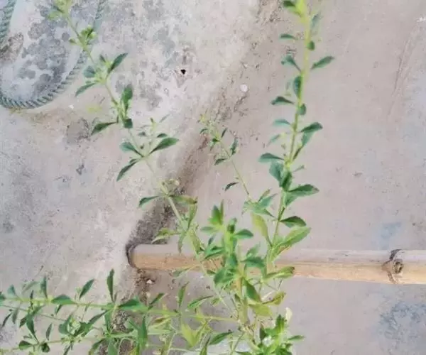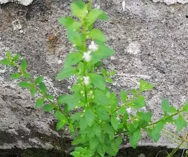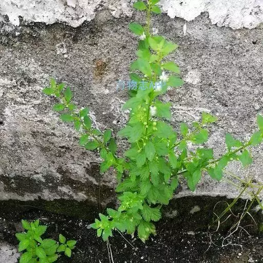 直立草本或为半灌木状,高可达100厘米,茎多分枝,枝有 野甘草 棱角及狭翅,无毛。叶对生或轮生,菱状卵形至菱状披针形,长者达35毫米,宽者达15毫米,枝上部叶较小而多,顶端钝,基部长渐狭,全缘而成短柄,前半部有齿,齿有时颇深多少缺刻状而重出,有时近全缘,两面无毛。花单朵或更多成对生于 野甘草 叶腋,花梗细,长5-10毫米,无毛;无小苞片,萼分生,齿4,卵状矩圆形,长约2毫米,顶端有钝头,具睫毛,花冠小,白色,直径约4毫米,有极短的管,喉部生有密毛,瓣片4,上方1枚稍稍较大,钝头,而缘有啮痕状细齿,长约2-3毫米;雄蕊4,近等长,花药箭形,花柱挺直,柱头截形或凹入。蒴果卵圆形至球形,直径2-3毫米,室间室背均开裂,中轴胎座宿存。