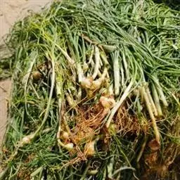 6.采收:一播后50天左右即可陆续分批采收鲜嫩蒜苗上市,为延长供应期,增加产量,应采用隔株采收分批上市。