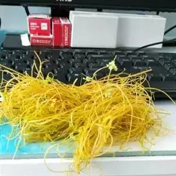 6.穿线的时候要穿两层,能更好地起到固定作用不让蒜苗长歪。