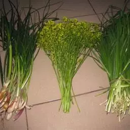 四季蒜苗是珍稀奇特的最新蔬菜品种,从山东引种。该作物主产蒜苗或蒜薹,如果利用拱棚或温棚铺盖黑塑膜可生产蒜黄。与大蒜相比,其形状与普通蒜苗、蒜黄、蒜薹相似,味道基本一样,但不长蒜头,且四季生产蒜苗,适应性强,不择土壤,且无病虫害,凡有种大蒜的地方都能种植,既适合春播又可夏秋播种,它长势强,能像韭菜那样收割且复萌多年生长。一次种植可生长八年,四季蒜苗当年育苗移栽后可视其长势割蒜苗,次年春季开始大量生产蒜苗或蒜黄9-10茬。