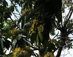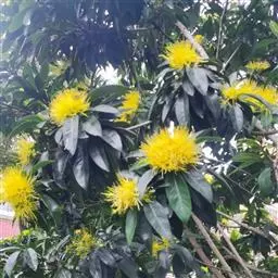 蒲桃(学名:Syzygium jambos(L.)Alston),为桃金娘科的常绿乔木,高10米,主干极短,广分枝;叶片革质,披针形或长圆形;聚伞花序顶生,花瓣分离,阔卵形;果实球形,果皮肉质,直径3-5厘米,成熟时黄色;种子1-2颗,多胚。花期3-4月,果实5-6月成熟。