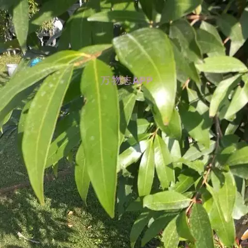 乔木,高10米,主干极短,广分枝;小枝圆形。叶片革质,披针形或长圆形,长12-25厘米,宽3-4.5厘米,先端长渐尖,基部阔楔形,叶面多透明细小腺点,侧脉12-16对,以45度开角斜向上,靠近边缘2毫米处相结合成边脉,侧脉间相隔7-10毫米,在下面明显突起,网脉明显;叶柄长6-8毫米。