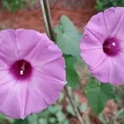 番薯 Lam.),多年生草质藤本植物,具有乳汁;其块根为白、红或黄色;茎生不定根;叶呈宽卵形或卵状心形,叶色有浓绿、黄绿、紫绿等,前端渐尖,基部呈心形或近平截;花冠为粉红、白、淡紫或紫色,呈钟状或漏斗状,无毛;蒴果呈卵形或扁圆形;由于番薯是于异花授粉,自花授粉常不结实,所以有时只见开花不见结果。 种子1-4粒,通常2粒,无毛。番薯原产于南美洲及大、小安的列斯群岛,现已广泛栽培在全世界的热带、亚热带地区,但在一些较北的地区如黑龙江省也已栽种成功,中国大多数地区都普遍栽培。番薯适应性强,喜温暖多光而不耐霜冻,抗旱耐碱,适种于肥沃而排水良好的砂质壤土,是一种易于保收的作物。番薯是一种高产而适应性强的粮食作物,在中国南方,有“一造番薯半年粮”的说法, 与工农业生产和人民生活关系密切;块根除作主粮外,也是食品加工、淀粉和酒精制造工业的重要原料;根、茎、叶可作