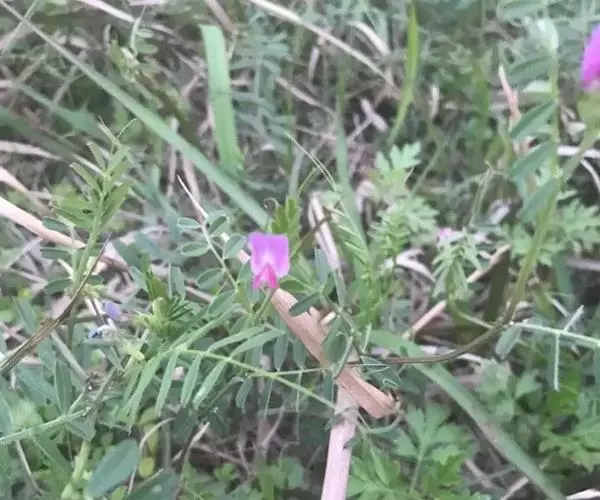 救荒野豌豆(学名:Vicia sativa L.)是豆科,野豌豆属一年生或二年生草本植物,高可达105 厘米。茎具棱,被微柔毛。叶轴顶端卷须;托叶戟形,小叶片长椭圆形或近心形,先端圆或平截有凹,侧脉不甚明显,花 腋生,近无梗;萼钟形,萼齿披针形或锥形;花冠紫红色或红色,旗瓣长倒卵圆形,翼瓣短于旗瓣,子房线形,子房具柄短,荚果线长圆形,果瓣扭曲。种子圆球形,棕色或黑褐色,4-7月开花,7-9月结果。
