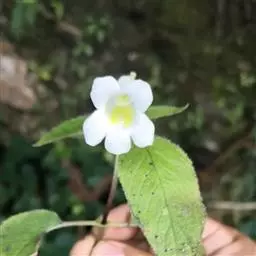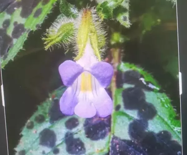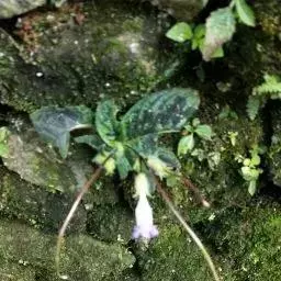 斑叶唇柱苣苔是苦苣苔科植物。属于一年生草本。茎高6-46厘米,有1-6节,不分枝或有短分枝,被柔毛。叶对生,同一对叶稍不等大;叶片草质,有紫色斑,狭卵形、斜椭圆形或卵形,花期7-9月。在中国,缅甸北部,泰国,越南北部,不丹,锡金,尼泊尔及印度都有分布。