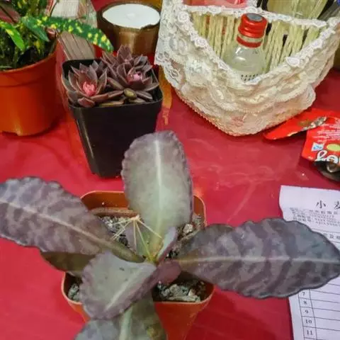 江户紫,景天科伽蓝菜属草本植物,是多年生草本花卉。花白色,但栽培中很少能见到花,常作观叶植物栽培。…