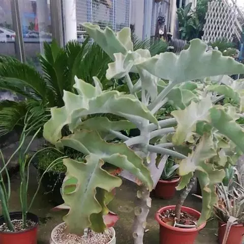 高砂之翁是景天科,拟石莲花属的多肉植物。特征是其边缘呈大波浪卷形的宽大叶片,…