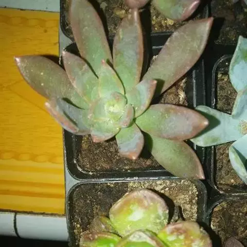 小红衣是景天科、拟石莲花属的一种多肉植物。叶片匙形,扁平细长,叶表具白粉,有明显的半透明边缘,…