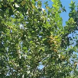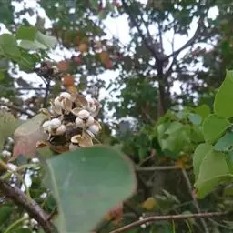乌桕 Small)大戟科乌桕属木本植物。树皮为暗灰色,有竖向的裂纹;枝条展开很广,有皮孔;叶片互生,…