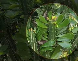 小乔木,高2~6米,直径10~25厘米,老时呈灰色或淡灰色,幼时绿色,上部平展或分枝;小枝肉质光棍…