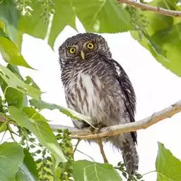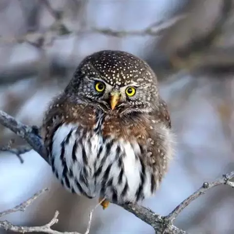 横斑腹小鸮:是鸱鸮科、小鸮属的一种鸟类。体长20厘米左右。面盘不明显,没有耳羽簇,皱领也不显著。…