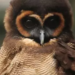 褐林鸮是夜行猛禽。喙坚强而钩曲。嘴基蜡膜为硬须掩盖。翅的外形不一,第五枚次级飞羽缺。尾短圆,…