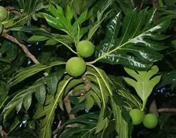 面包树 Fosberg)是桑科波罗蜜属植物。叶大,成熟之叶羽状分裂,表面深绿色,…