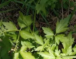 三出复叶,数叶与花簇生,或对生;小叶片为长椭圆状卵形、卵形或披针状卵形,边缘疏生粗大钝锯齿;长2-7厘米,宽1-5厘米,边缘缺刻状锯齿由多而锐至粗而钝,顶端3裂或不明显,两面疏生短柔毛,有时下面较密。