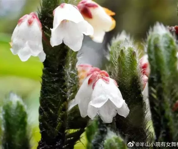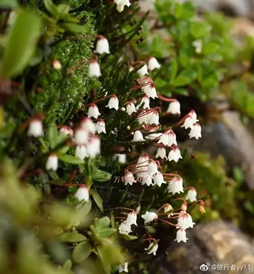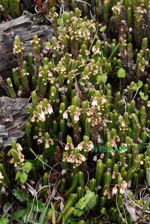 岩须(学名:Cassiope selaginoides Hook. f. et Thoms.)常绿矮小半灌木,高5-25厘米;枝条多而密,外倾上升或铺散成垫状,密生交互对生的叶。叶硬革质,披针形至披针状长圆形。花单朵腋生;花萼5,绿色或紫红色,裂片卵状披针形或披针形;花冠乳白色,宽钟状。蒴果球形,花柱宿存。花期4-5月,果期6-7月。产四川西部、云南西北部、西藏东南部。生于海拔2000-4500米的灌丛中或垫状灌丛草地。该种全草可入药。