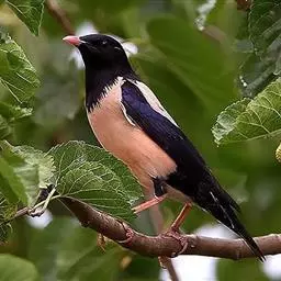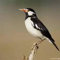 黑冠椋鸟:中等体型的椋鸟,体长21厘米。雄鸟前头为黑色并具金属光泽;头顶、颈项和羽冠亦为黑色;翅及翅上覆羽黑色;尾羽褐色,具白色端斑;上体灰色;下体淡黄褐色。雌鸟形态与雄鸟相似,但羽冠较雄鸟为短。虹膜蓝白或乳黄色;嘴峰铅绿色;跗蹠及爪柠檬黄色。头具黑色羽冠,与其他椋鸟易于区别。主要栖息于开阔落叶阔叶林和灌木林中以及多营巢于树洞中或其他洞穴内。属群鸟共栖。常4-8只结小群活动。鸣声清脆响亮。食物有果实和浆果,偶食花蜜和小型昆虫。分布于印度、中国云南耿马。常见于印度城镇、村庄及铁路沿线。偶见于中国云南西南部和西藏东南部。