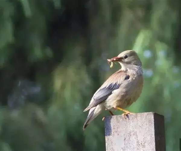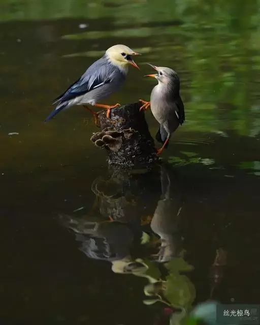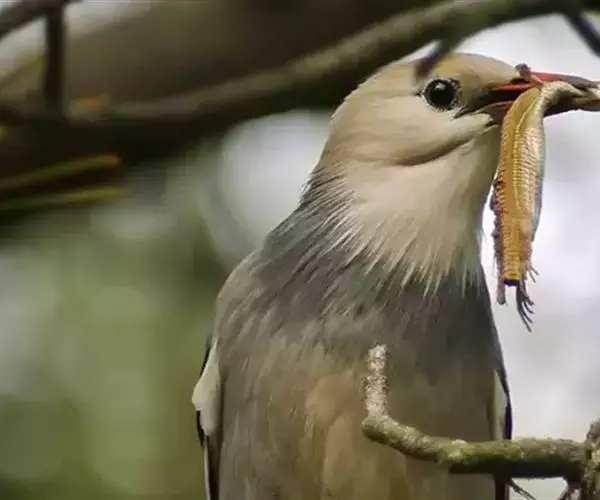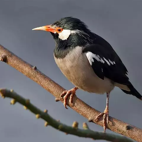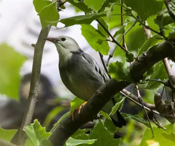 丝光椋鸟(学名:Sturnus sericeus):体型大小和其他椋鸟相似,体长20-23厘米。嘴朱红色,脚橙黄色。雄鸟头、颈丝光白色或棕白色,背深灰色,胸灰色,往后均变淡,两翅和尾黑色。雌鸟头顶前部棕白色,后部暗灰色,上体灰褐色,下体浅灰褐色,其他同雄鸟。特征均甚明显,野外不难识别。
