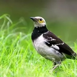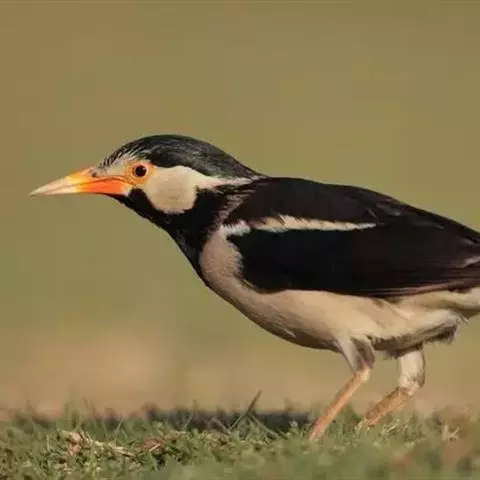 斑椋鸟:是中等体型的黑白色椋鸟,体长24厘米。头顶、头侧、翼斑、腰及腹部白色,喉、胸及上体余部黑色,…