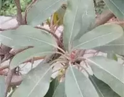 叶互生,星散或密聚于分枝项端,革质,倒卵形或倒卵状长圆形,长6-16厘米,宽2-6厘米,先端阔渐尖而钝头或骤然收缩,基部阔渐尖或尖楔形,两面无毛,上面具光泽或无,边缘外卷,中脉在上面稍凸起,在下面浑圆且十分凸起,侧脉13-22(26)对,表面不十分明显,下面明显,成80度角上升;叶柄细,长约1.5-3.5厘米,被锈色或灰色短柔毛,上面具深沟槽。