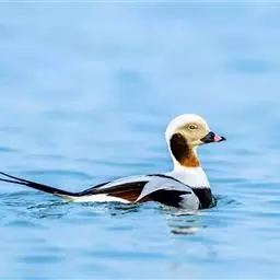 长尾鸭体长约58厘米,是中等体型的灰、黑及白色鸭,中央尾羽特长,雄鸟胸部的黑色斑块为特征。…