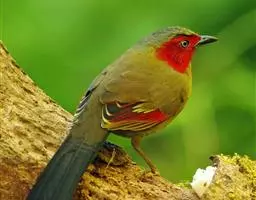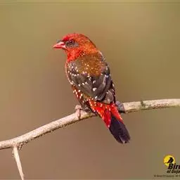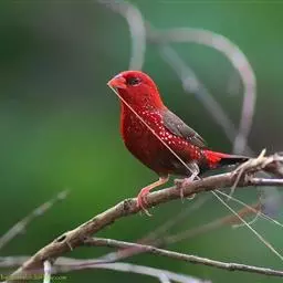 红梅花雀小型鸟类,体长9-10厘米。雄鸟通体朱红色,背、肩、胸等满布白色小斑点,…