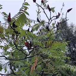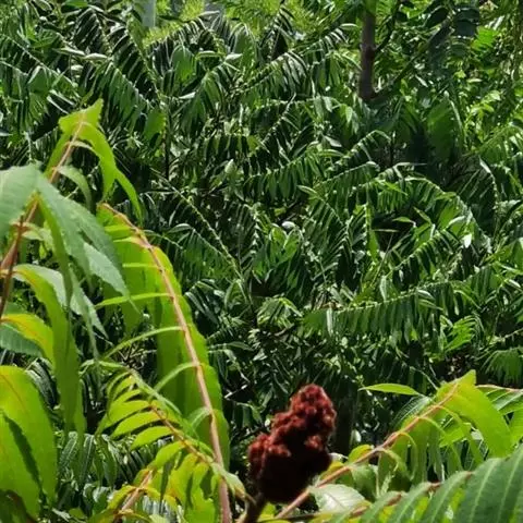 火炬树是漆树科盐麸木属落叶灌木或小乔木;株高,树形不整齐;小枝粗壮,红褐色,密生绒毛;叶轴无翅,…