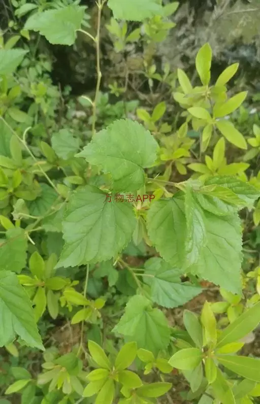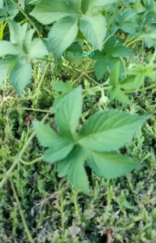 叶纸质,肾状五角形,掌状5-7深裂稀为3裂,长宽约7-10厘米,基部心脏形,表面粗糙,疏生糙伏毛,背面有柔毛和黄色腺体,裂片卵状三角形,边缘具锯齿;叶柄长5-10厘米。雄花小,黄绿色,