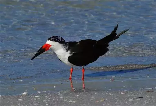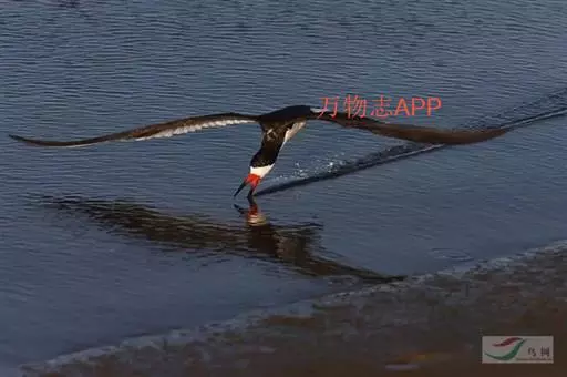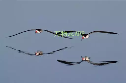 剪嘴鸥下喙比上喙长,捕食时紧贴水面飞行,将下喙叉入水中分水从而将食物送入嘴中。