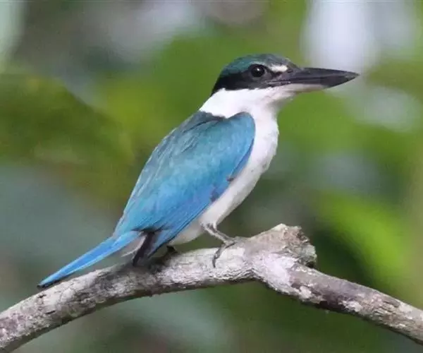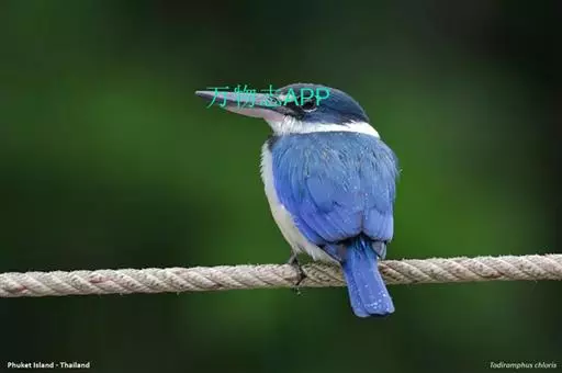 白领翡翠(学名:Todirhamphus chloris):有50个亚种。体长18厘米,体重35-40克。是一种蓝白色翡翠鸟。头顶、两翼、背及尾呈亮丽蓝绿色;过眼纹黑色;眼先黑色,眼眉白色或浅黄色,嘴上部具白点。以白色的颈环及下体为识别特征。 整个下体为白色。虹膜褐色;嘴上嘴深灰,下嘴浅灰;脚灰色。