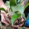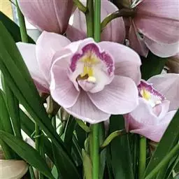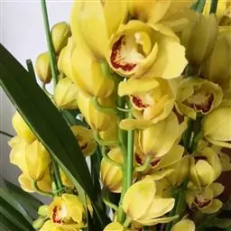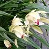 假鳞茎比较粗壮;叶片形状与金嘴相似,叶片宽,每片叶的两边都是银色的,故取名银边;花茎直立,高出叶面,花幽香。