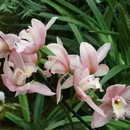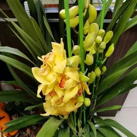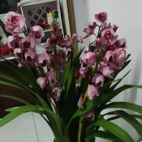 企黑又叫企剑、山川等,株型紧凑;叶片较直立、宽大,叶片墨绿色,无任何斑点或线艺;花香,花茎直立,不高出叶面,每支花的数量一般在8-16朵。