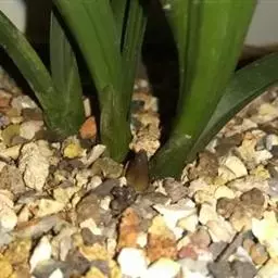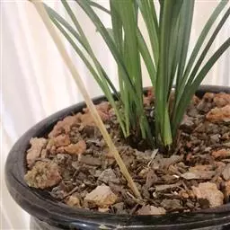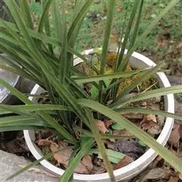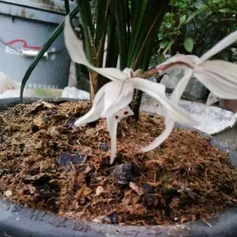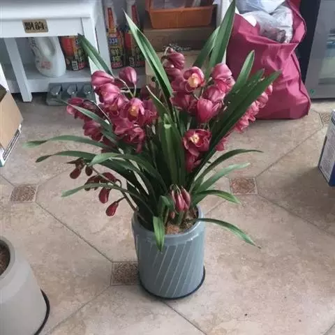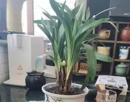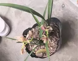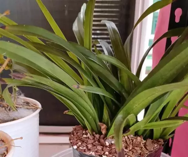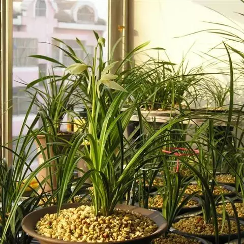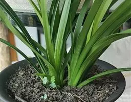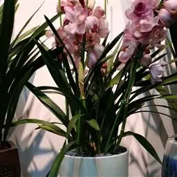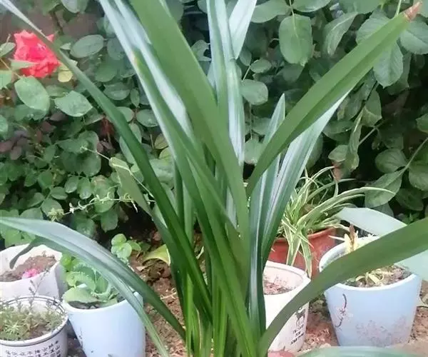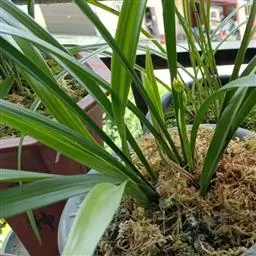 盆选好后,种植前先在盆底排水孔上面盖以大片的碎瓦片,并铺以窗纱,接着铺上山泥粗粒,即可放入兰株(兰株根系的分布要均匀、舒展,勿碰盆壁),然后往盆内填加腐殖土埋至假鳞茎的叶基处。并在泥表面再盖上一层白石子或翠云草,既美观又可保持表土湿润。接着用盆底渗水法使土透湿后取出,用喷壶冲净叶面泥土,放置蔽荫处缓苗,一周后转入正常管理。