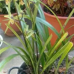 寒兰假鳞茎比较细长,墨兰的比较圆大。