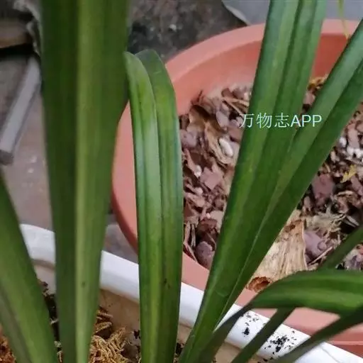 地生植物;假鳞茎卵球形,长2.5-6厘米,宽1.5-2.5厘米,包藏于 墨兰 叶基之内。叶3-5枚,带形,近薄革质,暗绿色,长45-80(-110)厘米,宽(1.5-)2-3厘米,有光泽,关节位于距基部3.5-7厘米处。