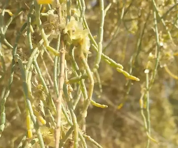 梭梭(学名:Haloxylon ammodendron (C. A. Mey.) Bunge)是藜科梭梭属植物,小乔木,高1-9米,树杆地径可达50厘米。树皮灰白色,木材坚而脆。花着生于二年生枝条的侧生短枝上;花被片在翅以上部分稍内曲并围抱果实;花盘不明显。胞果黄褐色,果皮不与种子贴生。种子黑色。花期5-7月,果期9-10月。