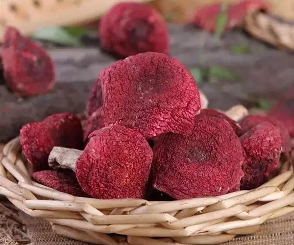 红菇有“菇中之王”的美称,系天然营养佳品。其风味独特,香馥爽口。有滋阴、补肾、润肺、活血、健脑、养颜等功效,经常食用,能强身健体、延年益寿。