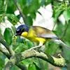 黄喉噪鹛体型略小,顶冠蓝灰色,特征为具黑色的眼罩和鲜黄色的喉。上体褐色,尾端黑色而具白色边缘,…