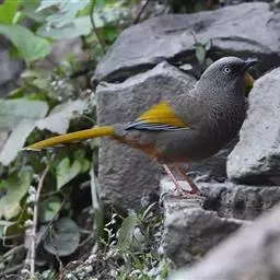 橙翅噪鹛:是噪鹛科、彩翼噪鹛属的中型鸟类,体长22-25厘米。头顶深葡萄灰色或沙褐色。上体灰橄榄褐色,…